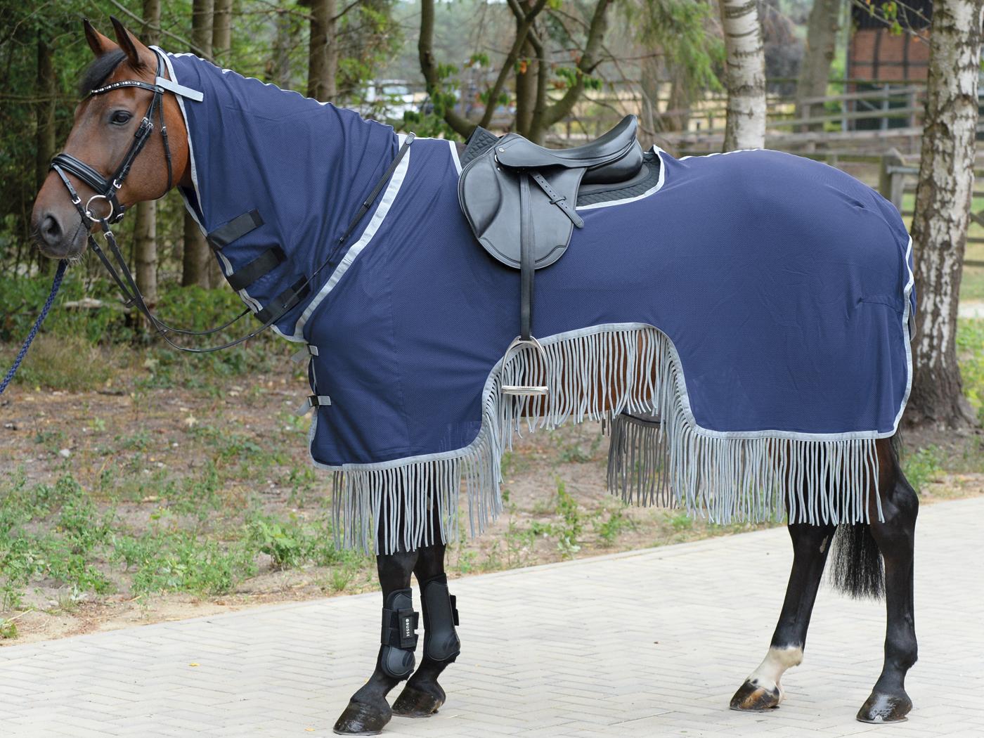 - Fliegen-Ausreitdecke mit extra Fransen am unteren Deckenende, welche sich beim Reiten hin und her bewegen