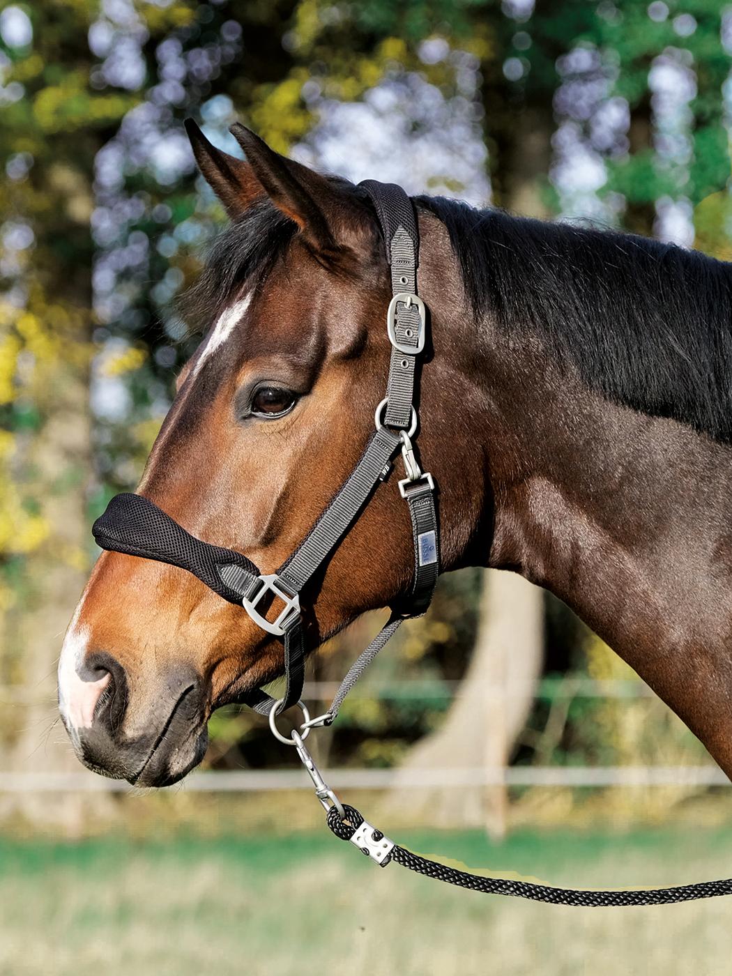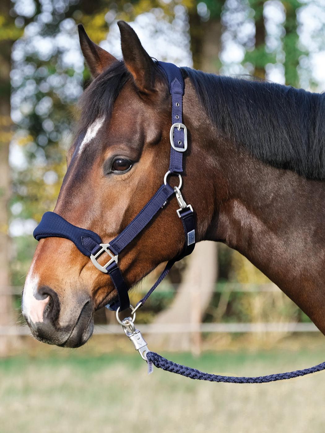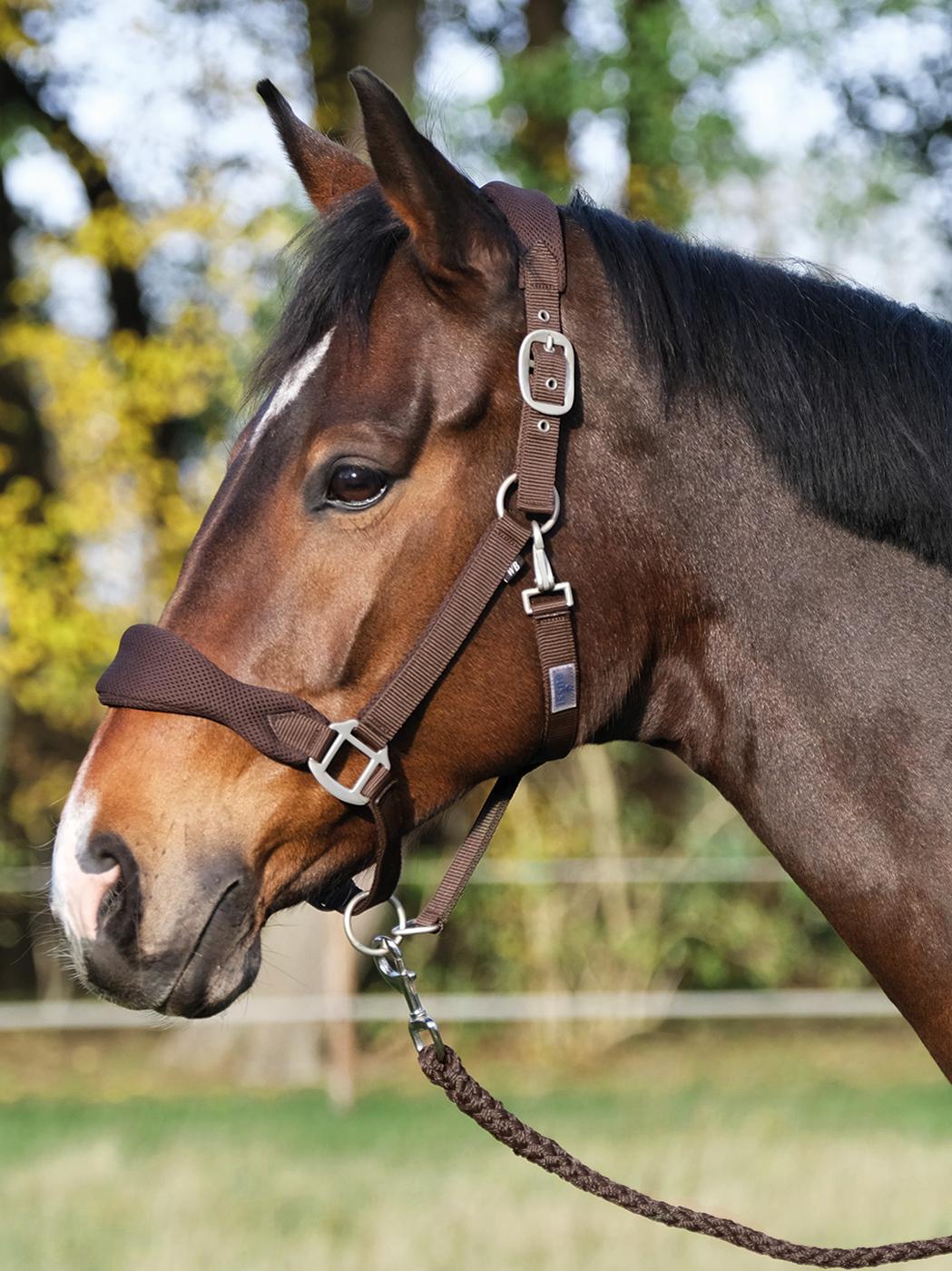 • doppelt bzw. teilweise dreifach gelegtes Gurthalfter mit fest integrierten Polstern aus 3D-Netzgewirk im Genick- und Nasenrückenbereich sowie als Padding an den Backenstücken, welche gleichzeitig gut abpolstern und optimal belüften
