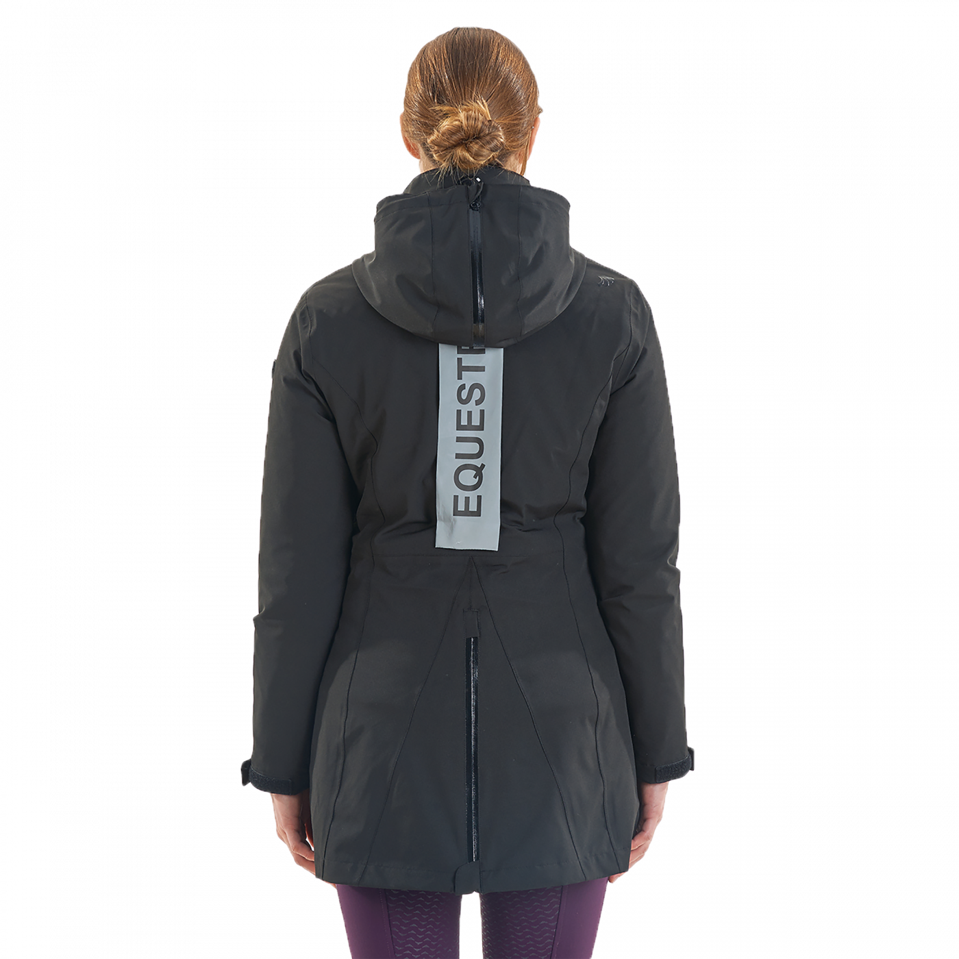 • langer Reißverschluss-Reitschlitz mit integriertem Regenschutz für den Sattel aus reflektierendem Material
