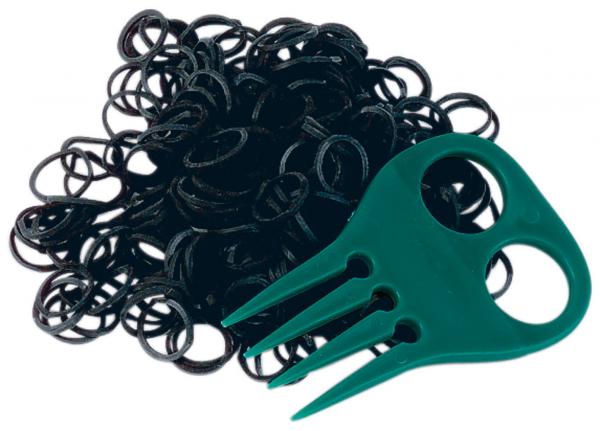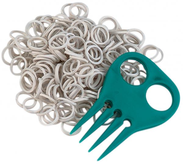 Das Mähnengummi Set von BUSSE enthält einen Einflechtkamm und ca. 250 Mähnengummis.