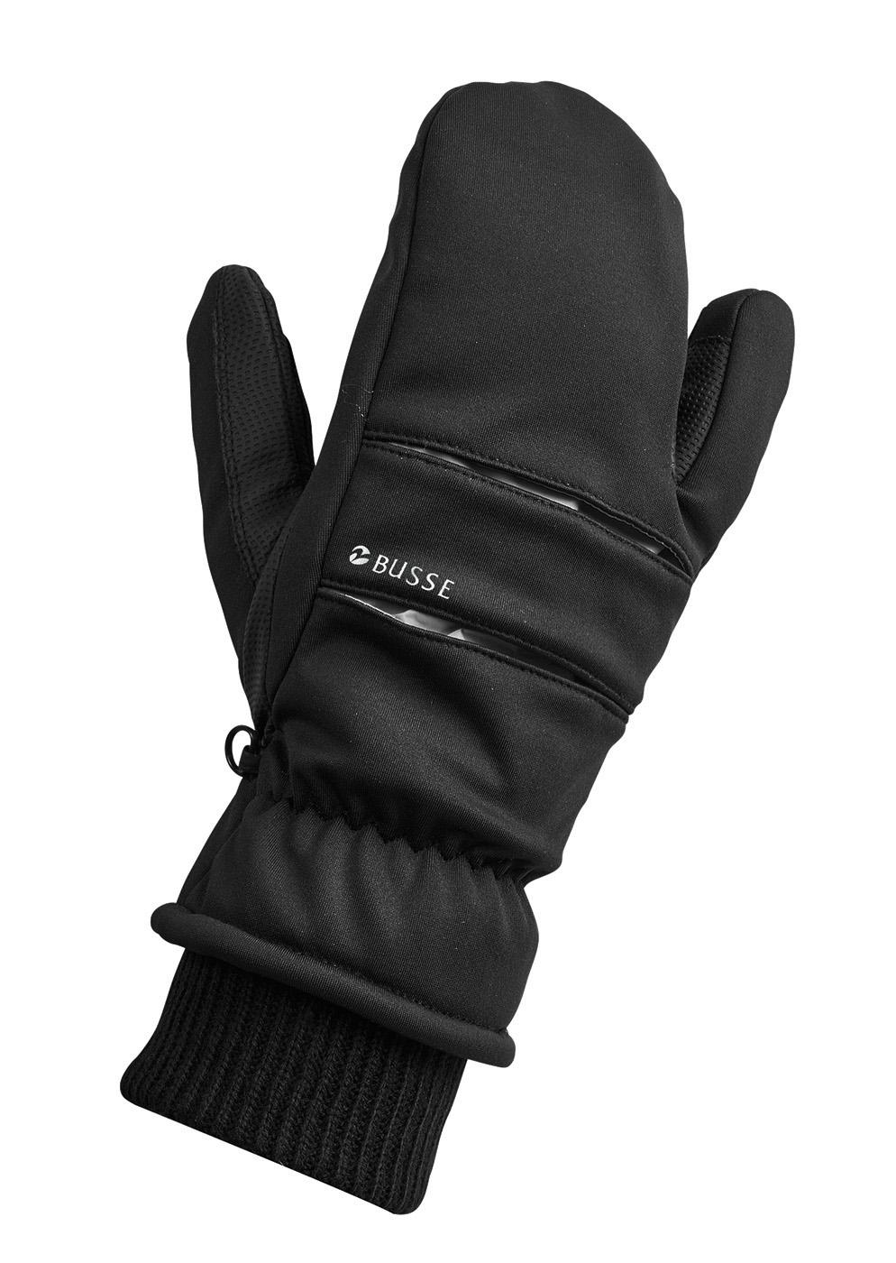 aus Softshell-Material mit anti-slip Zügelverstärkungen in den Handinnenflächen