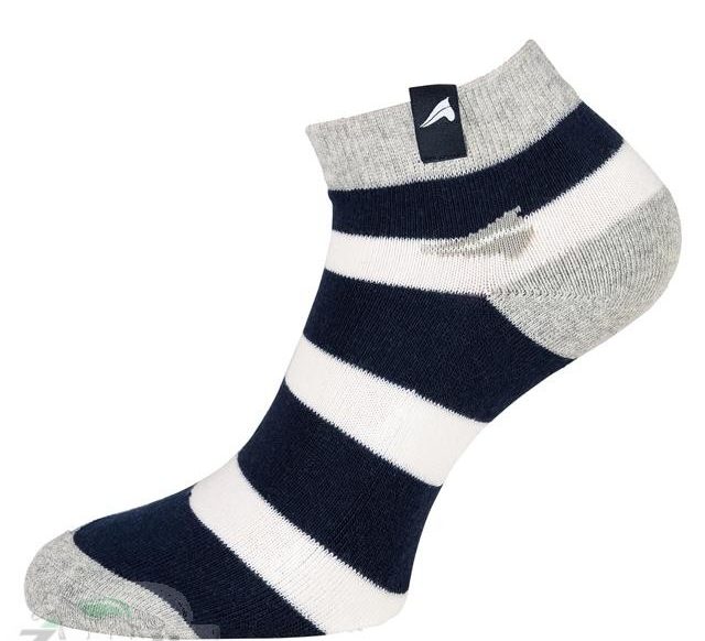 Kurze, bis an den Knöchel reichende Halb-Socken im modischen drei-Farben Streifen-Look.