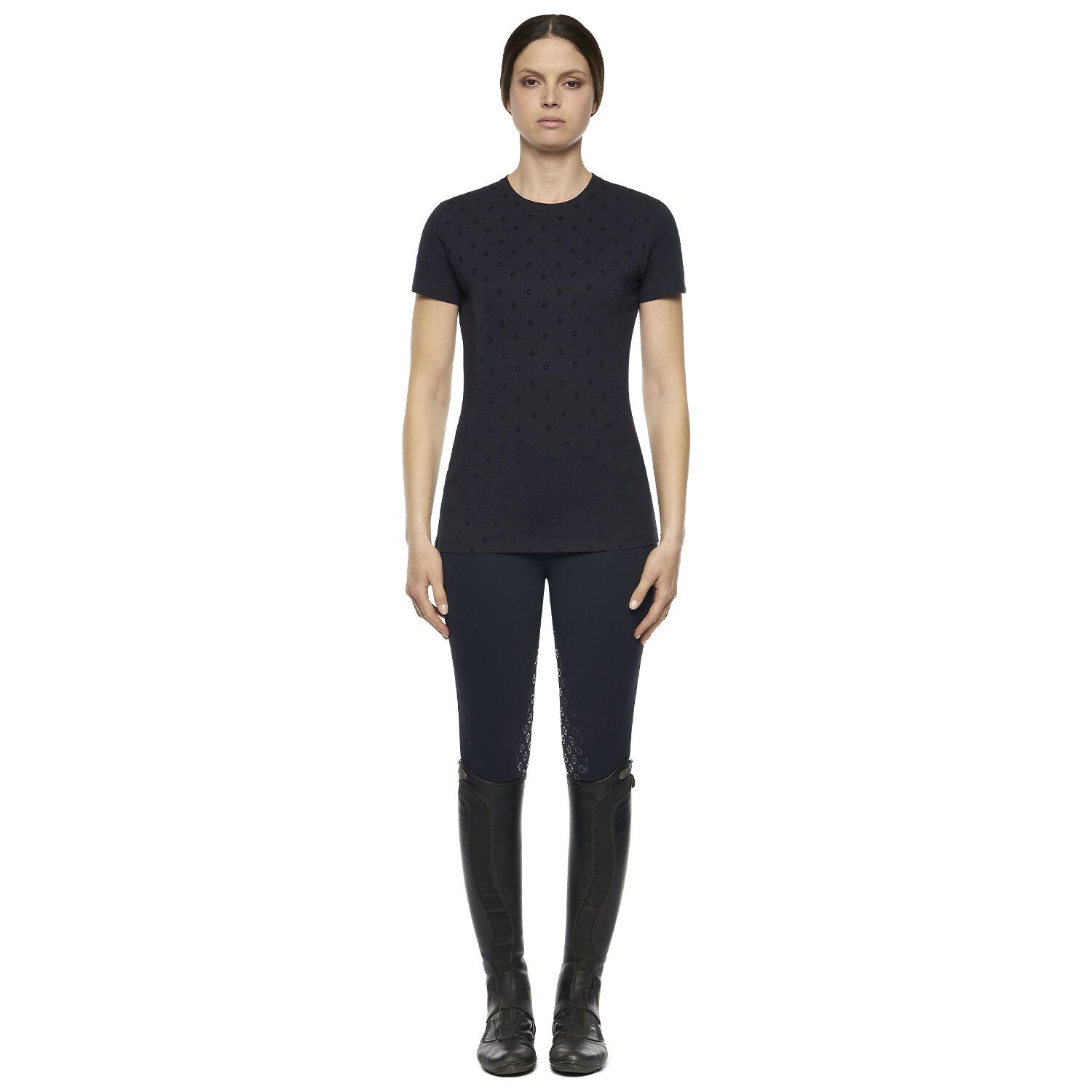 Das T-Shirt ist mit Mini-CT-Logos versehen.