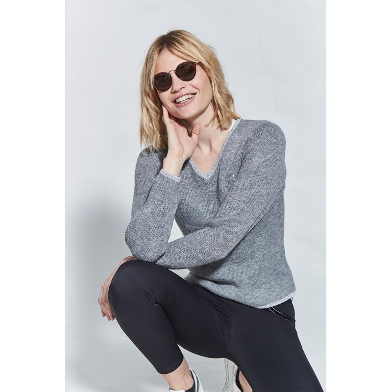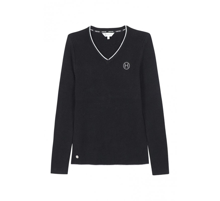 Dieser elegante Langarmpullover mit V-Ausschnitt verleiht Ihrem Reitoutfit einen modernen Touch