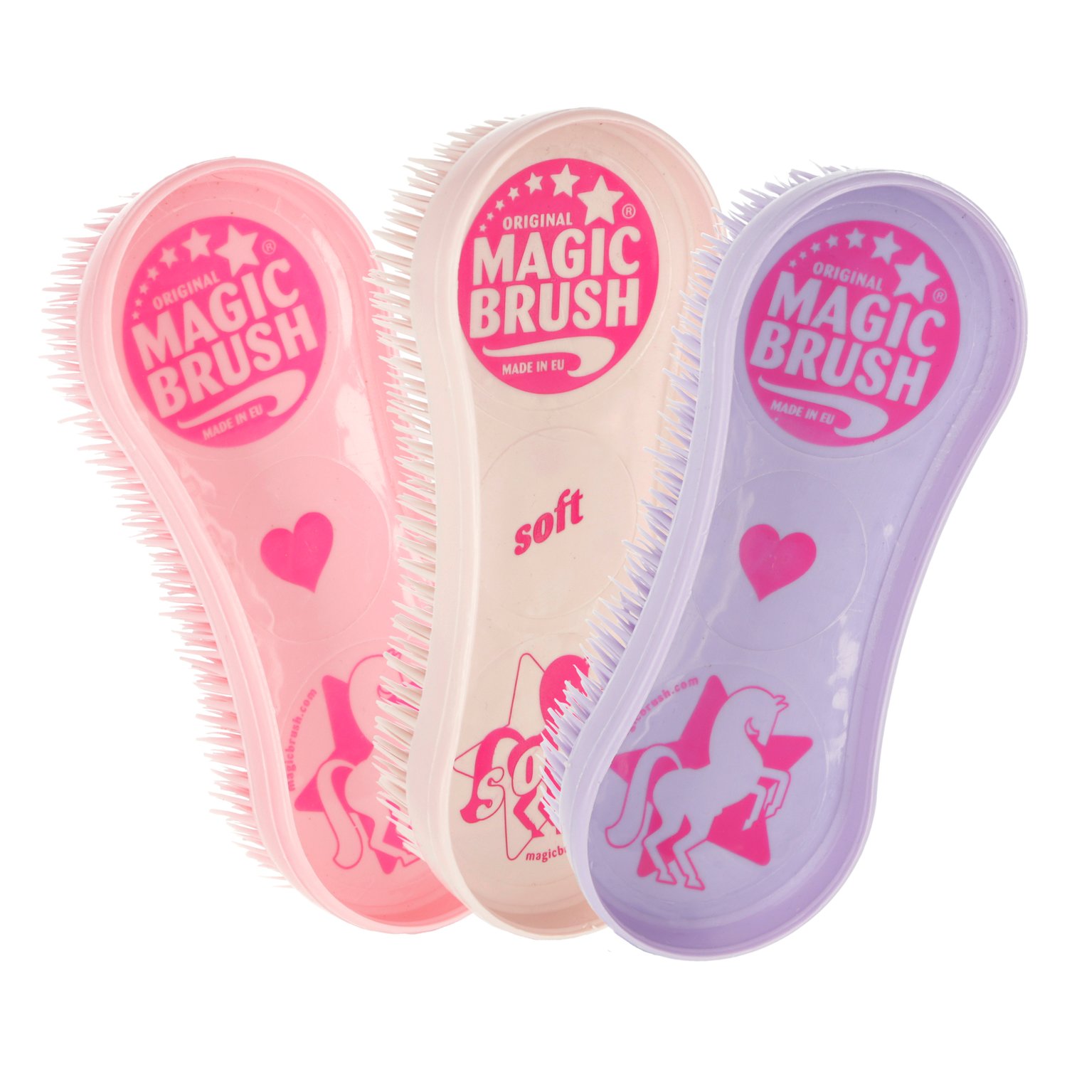Die wirkungsvolle Pferdepflege von MAGIC-BRUSH besteht aus zwei geläufigen Bürsten und einer Softbürste.