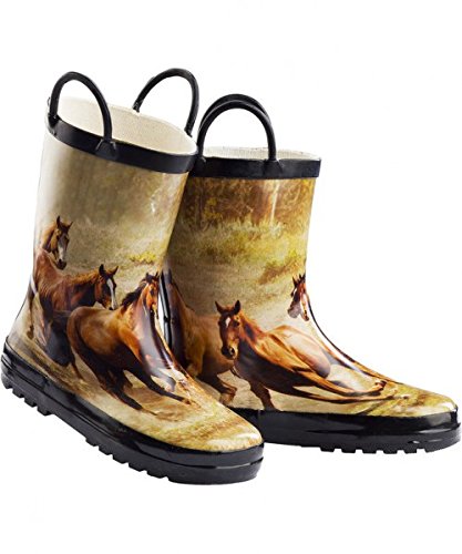 Da strahlen die Kinderaugen! Halbhoher Gummistiefel mit wunderschönen Pferdemotiven. Verstärkter Gummi-Absatz.
