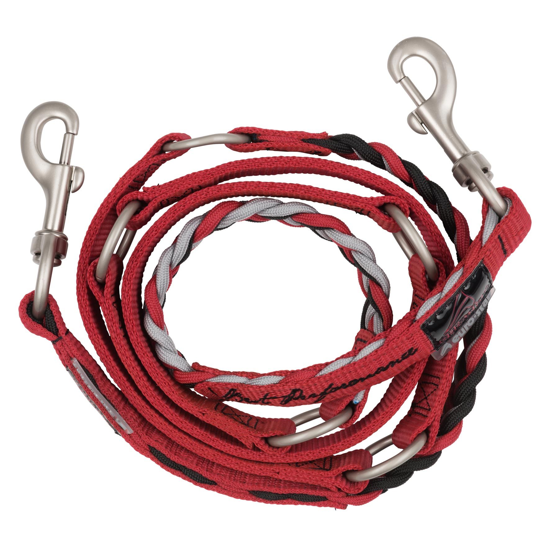 Der Multitask KH hat an jedem Ende einen Karabinerhaken und ist über die fünf integrierten Metallringe in der Länge individuell einstellbar.