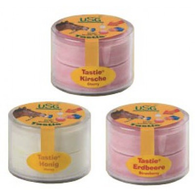 Der Ball kann mit zwei Tasties® in unterschiedlichen Geschmacksrichtungen bestückt werden.