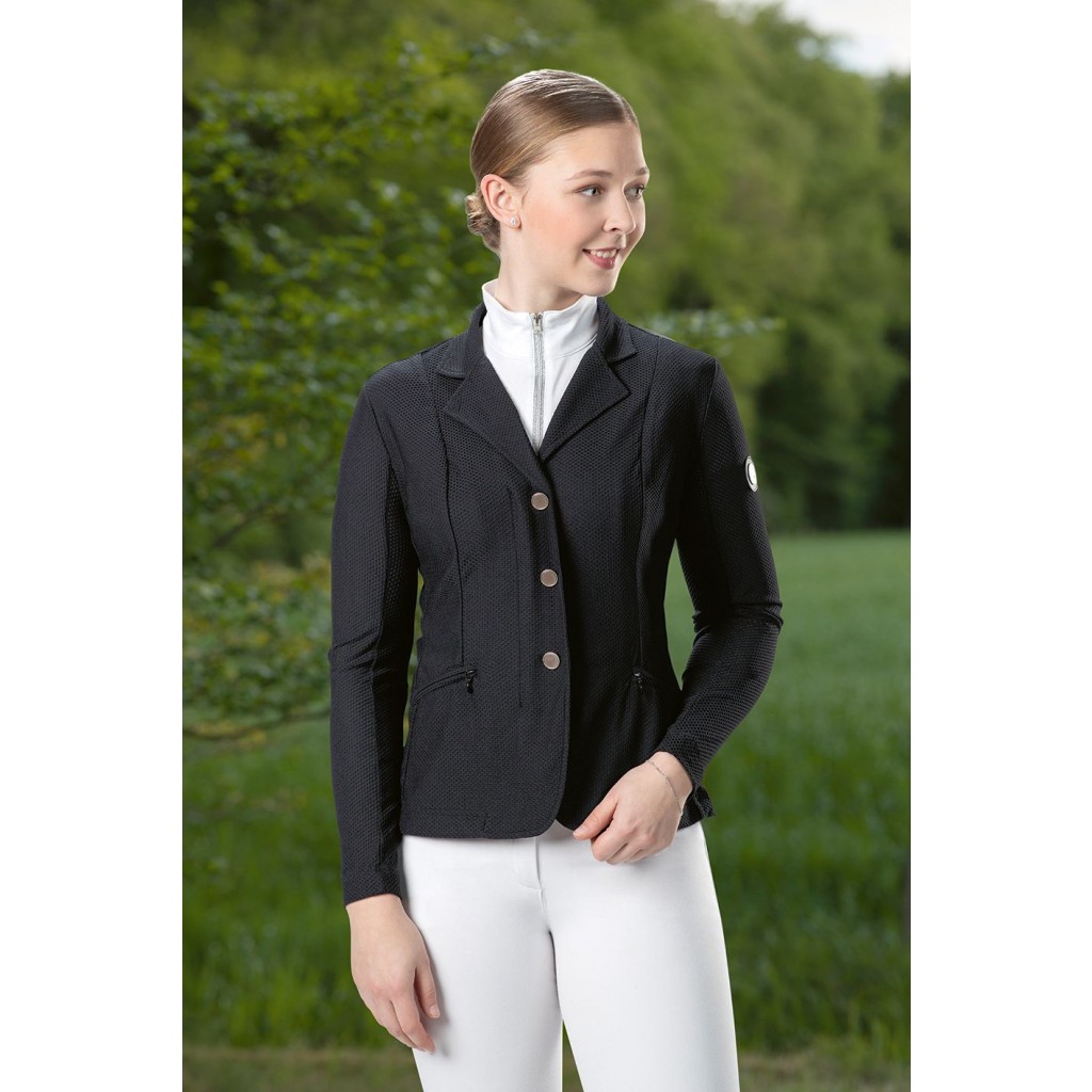 Dieses Turnierjacket von HKM aus Mesh-Material garantiert dir viel Bewegungsfreiheit und eine feminin schlanke Passform.